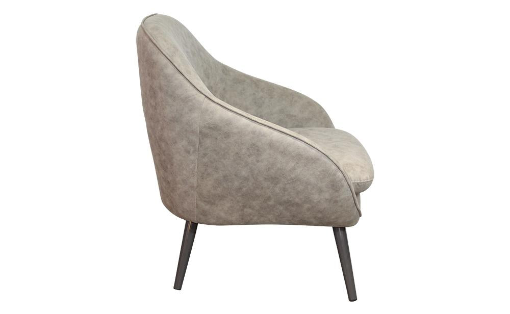 This Epsom armchair is a simple, yet comfortable, addition to any living room or bedroom. Its textured beige, suede-like fabric and champagne grey legs make it easy to match with other furniture. Plus, its boutique design adds a touch of elegance to any space.