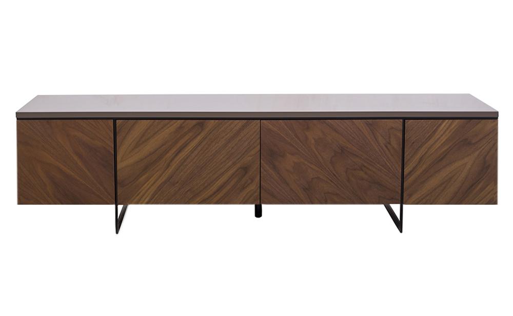 It has a walnut effect wood body, contrasting metal black legs and a stone grey glossy top. With its 150 cm and four push to open compartments, it offers plenty of hidden storage, but is still sleek enough to fit into a lot of spaces.